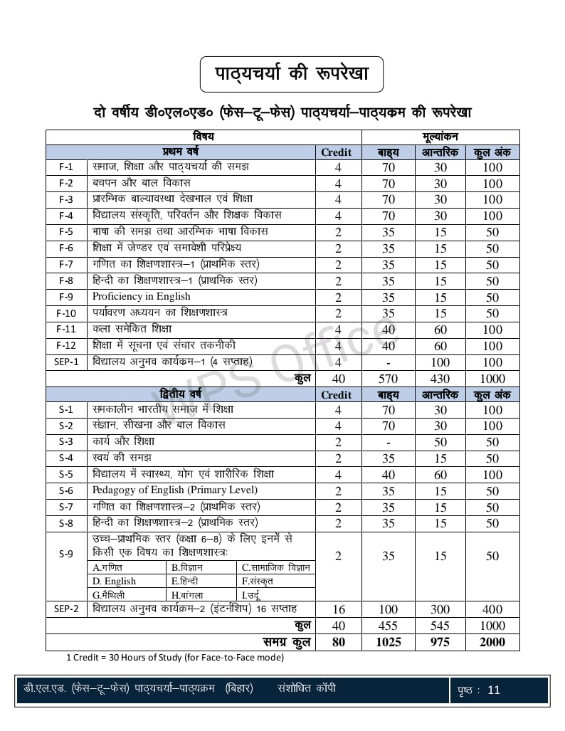 Course Structure for the NCTE Two-Year B.Ed. Programme.